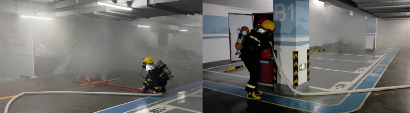 臨沂魯商中心與北京藍岸麗舍項目不約而同地精準聚焦新能源汽車火災這一新型風險。臨沂項目模擬了地下車庫新能源汽車充電起火場景,系統演練了從報警、專用設備滅火到人員疏散排煙的全流程;北京藍岸麗舍項目則在南彩消防救援站的專業指導下,現場實操了使用防火布苫蓋著火車輛、消防水帶滅火等關鍵技戰術,顯著提升了車庫里特殊火情的實戰處置能力。